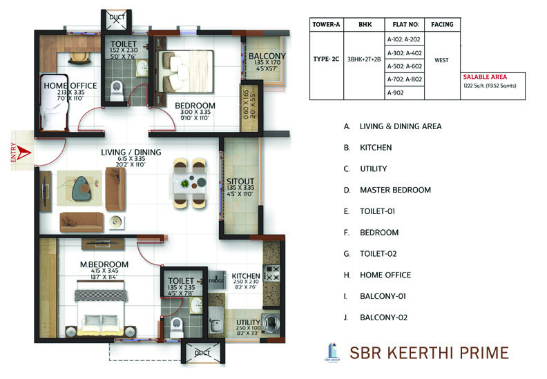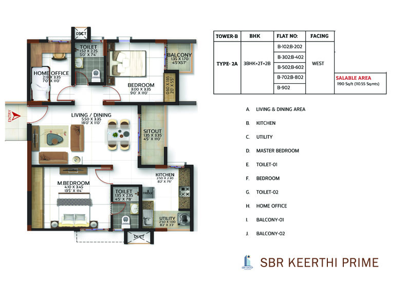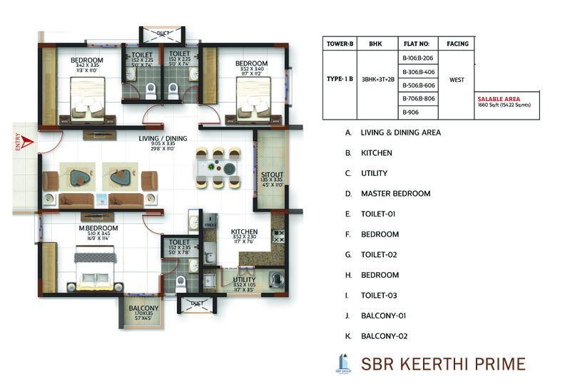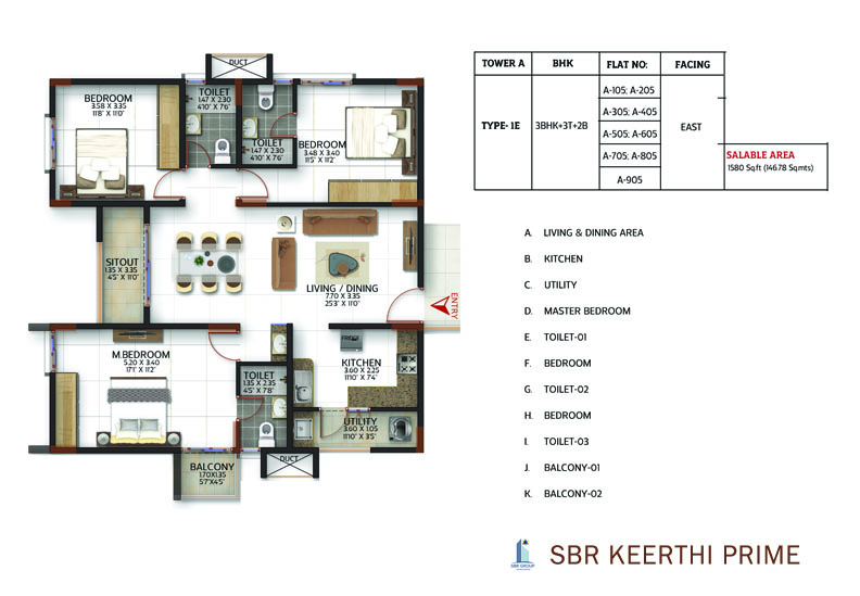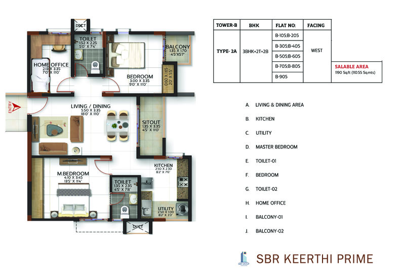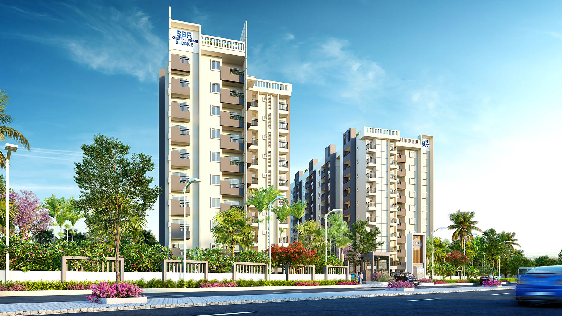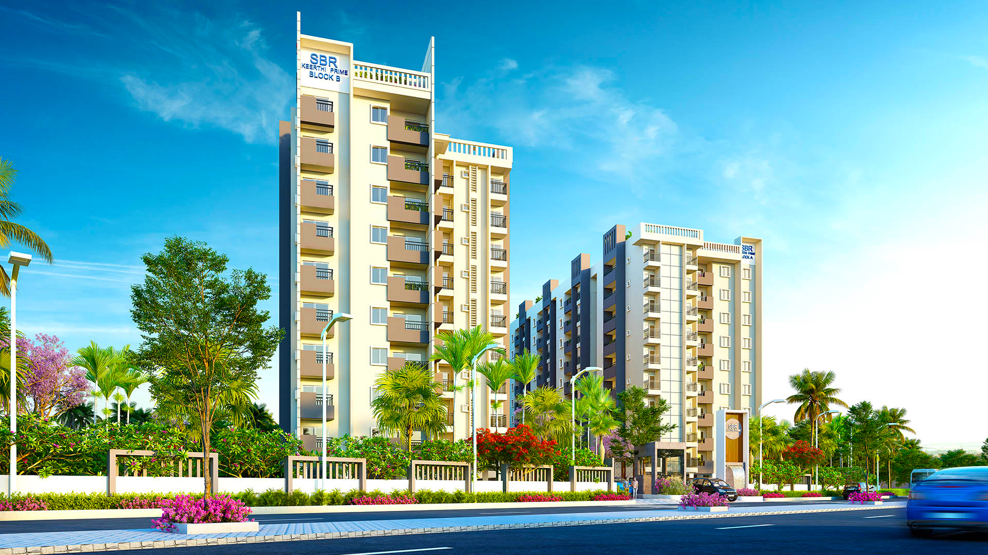 SBR Keerthi Prime is designed to incorporate more life into your lifestyle. Every apartment here is synonymous with unforgettable class and minimal sophistication combined with the goodness of natural elements. These aesthetically designed 2.5 BHK + 2 Toilets and 3 BHK +3 Toilets, independent flats are envisioned to let you and your family enjoy the prime living space with ease and joy.